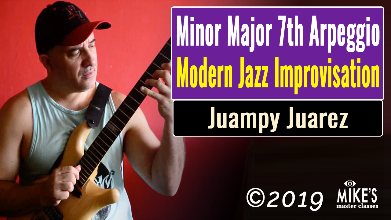 My friend John Stowell showed me this arpeggio many years ago.He has been playing these sounds coming from Melodic Minor scale for decades. I have been in love with this device for the first time that I listened t. Because I love wide intervals its fit perfect to me. Arpeggios are great for avoid scales, if you take a close listen to mostly Jazz and Fusion masters like Allan Holdsworth, Wayne Shorter ,Herbie Hancock, and John Coltrane, they don't use scales.They use arpeggios, triads and other more ceative patterns with wider intervalls than minor or major second. Using only one kind of arpeggio looks weird but it works well.Because the Minor Maj 7th sound represents not only the Melodic Minor, if not also the Harmonic minor, also the fourth mode of Harmonic major scale, and The Simmetrical augmented scale. In this video lesson I'm tried to explore all the possibilities coming from the previously mentioned scales.Besides that, I teach another devices that I play like string skip's patterns and my invention “the borders of the position's scale” among triads from each scale plus examples using original arpeggios mixed with the new one Minor major 7th. Have fun! Juampy Juarez January 2019- 8 Pages PDF (Standard Notation)